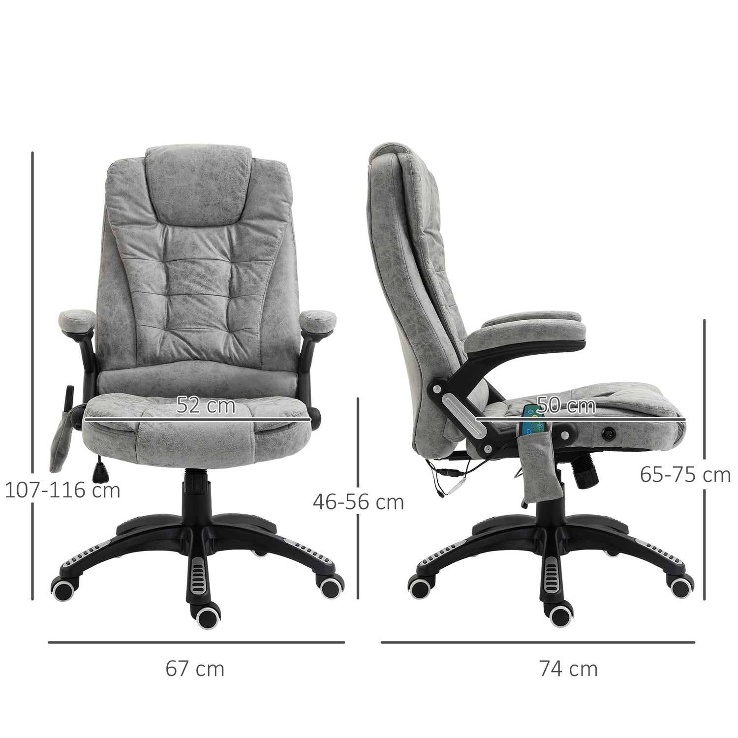 Vinsetto Massage Recliner Chair Heated Office Chair with Six Massage Points Microfiber Cloth 360° Swivel Wheels Grey