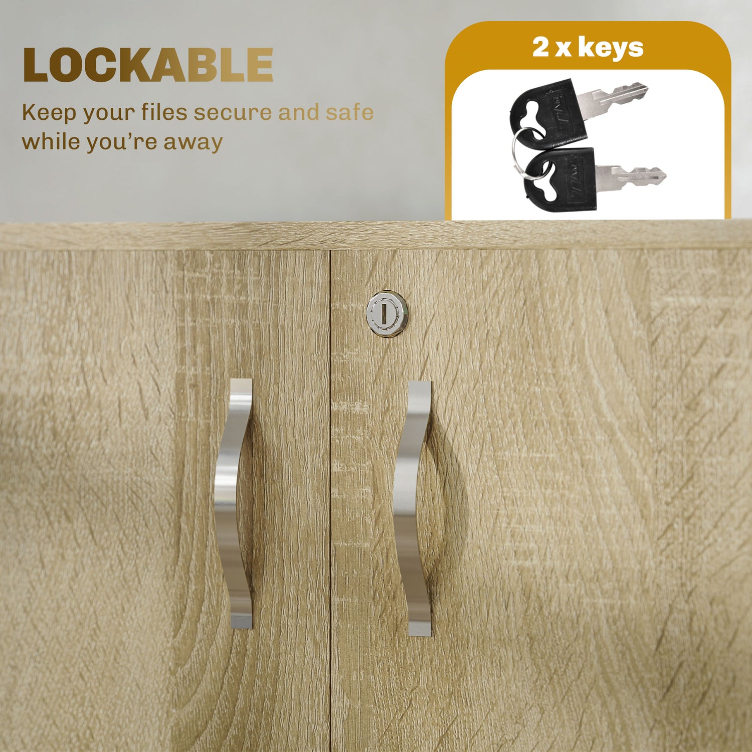 - Lockable, with two keys included: Keeps contents safe and secure in this locking office storage cabinet whilst away. Two keys so you have a spare.