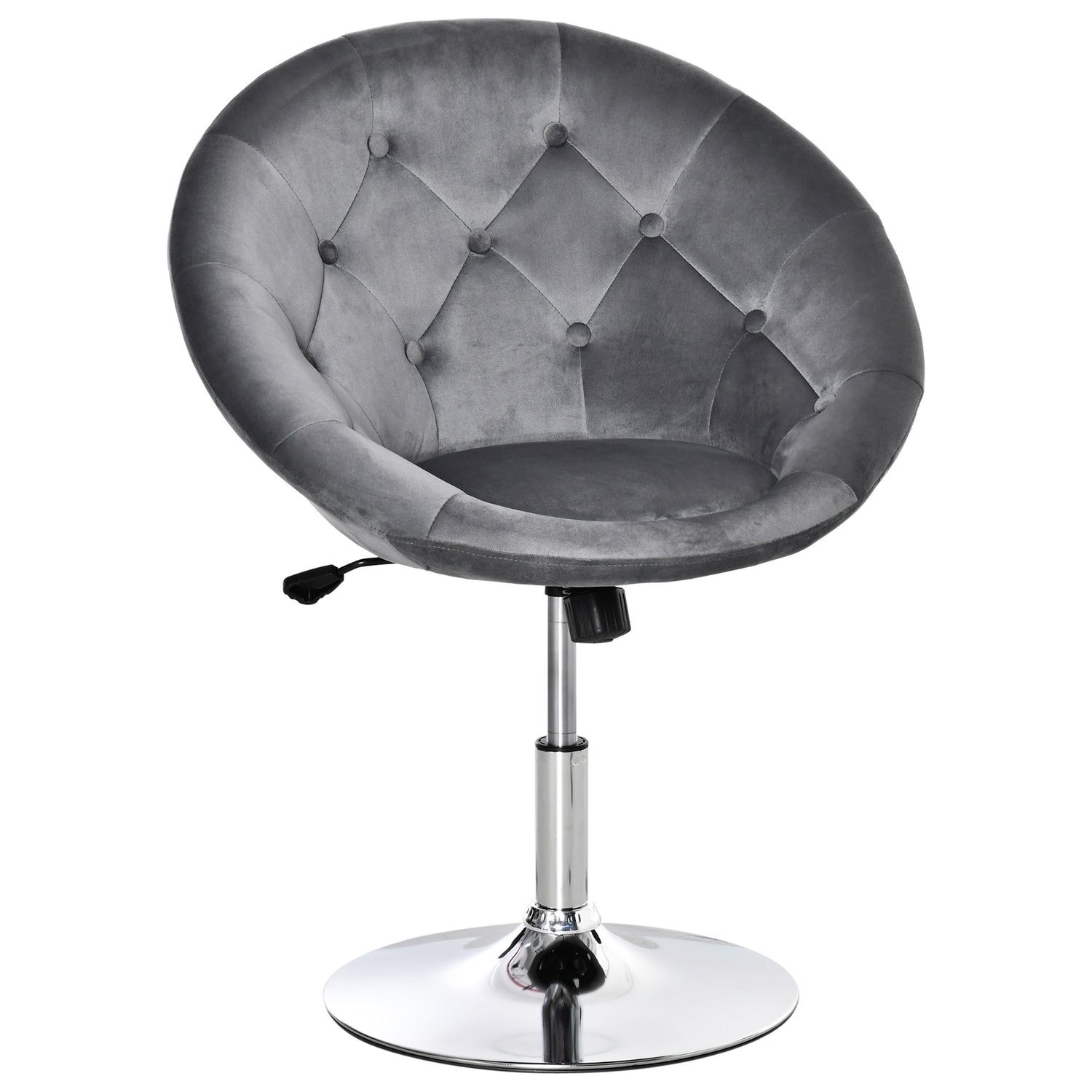 It's charming, soft and sophisticated: this kitchen stool from HOMCOM. For the kitchen dining areas, living spaces and beyond, the adjustable stool is bound to make an impression wherever it stands. The seat is made into a large round shape for a retro look, with the button tufting accentuating its effect. The stool to sit on is wrapped in soft velvet-feel upholstery, with a high back for support and a padded seat for comfort.