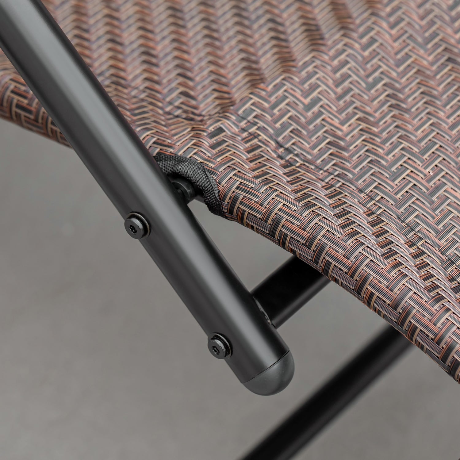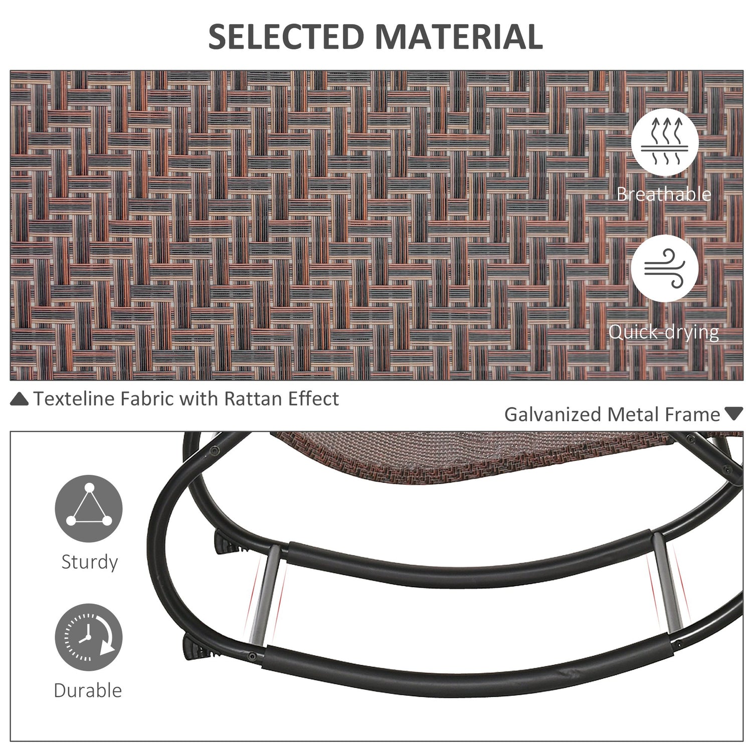 Lay back, bask in the sunshine and rock back whenever with this comfortable rocking garden chair from Outsunny. Made from metal for a fully supportive structure, the garden rocking chair is crafted into a curved-base design so it rocks forwards and backwards gently. The seat is made into a rattan-effect to match your other garden furniture. The padded pillow on the top serves comfort when you lean back. Completed with stoppers so the garden rocking chairs for adults don't tip backwards too far.